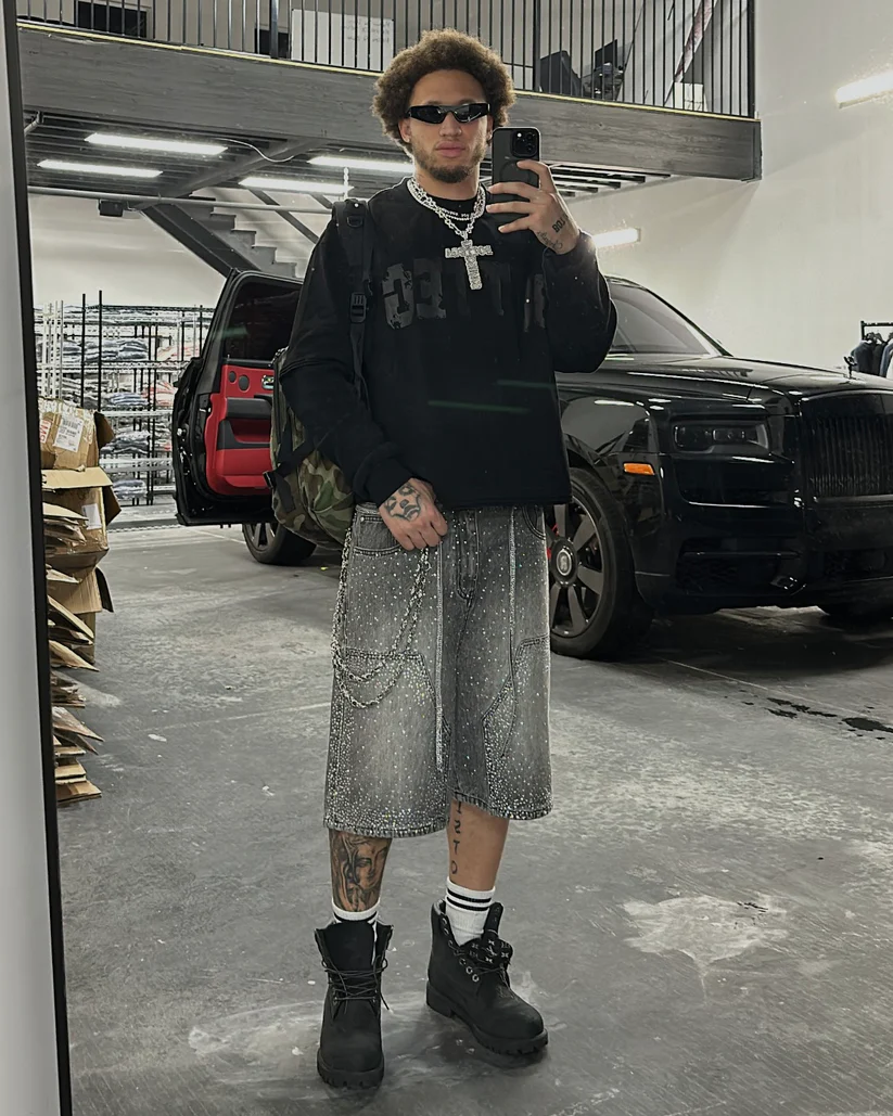 The Bottege Desires War Long Sleeve T-Shirt (Black) delivers a bold, tactical-inspired streetwear look. Featuring a distressed “BOTTEGA” graphic across the chest and subtle mesh sleeve panels, this tee blends attitude with comfort. Crafted from soft, durable fabric, it offers a relaxed fit perfect for everyday wear, layering, and styling. Its all-black aesthetic gives it a clean yet powerful edge—ideal for anyone who wants standout minimal street fashion from Bottege Desires.